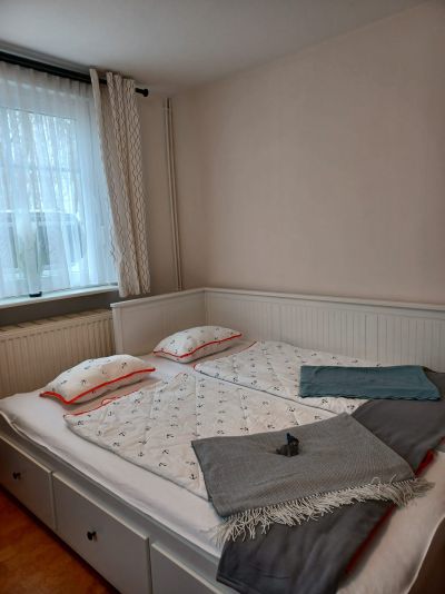 - Schlafen: ein Schlafzimmer mit 1 großem Doppelbett, zweites Schlafzimmer mit 2 Schlafgelegenheiten